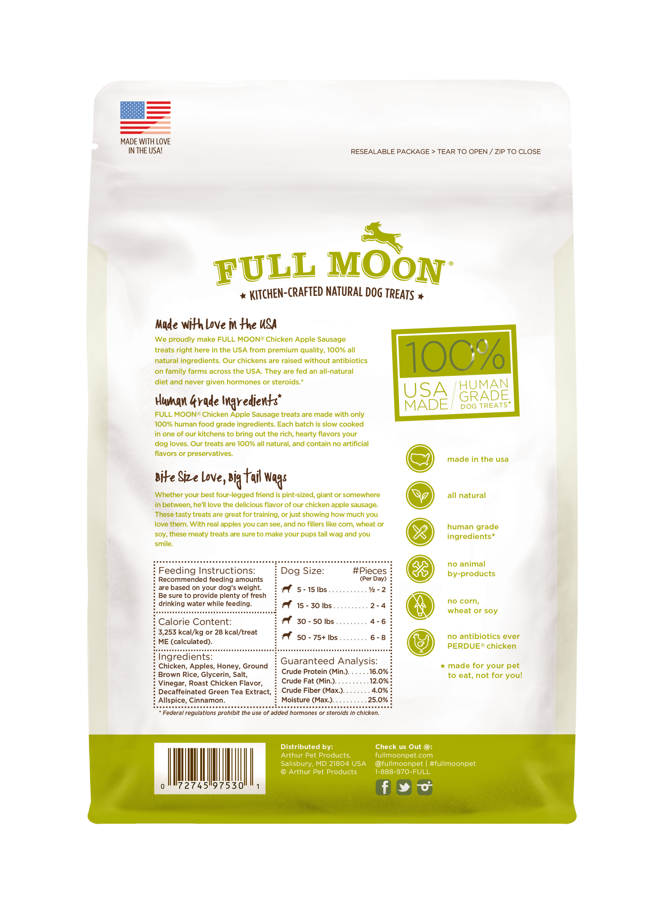 Full Moon All Natural Human Grade Dog Treats Chicken Apple Sausage 10 Oz Walmart Com
